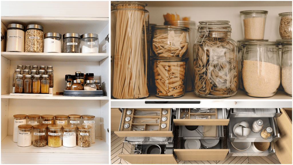 - Use Storage Containers: Invest in clear storage containers for dry goods like flour, sugar, rice, and pasta. This not only keeps them fresh longer but also makes it easier to see what you have at a glance.