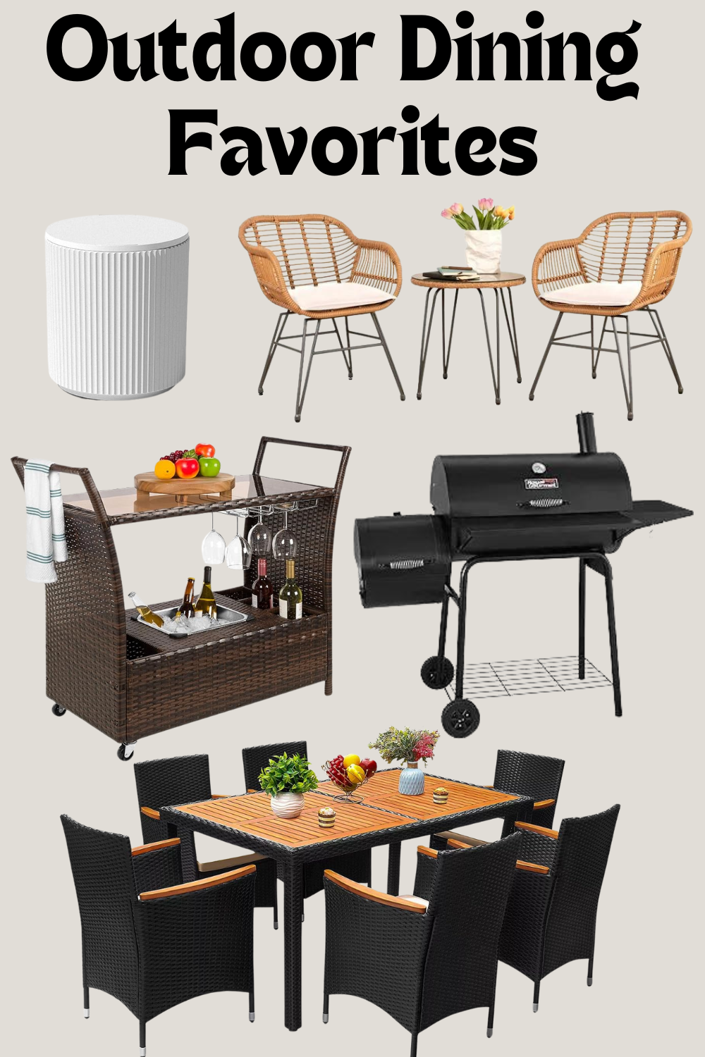 [ Dining Set ] [ Small table + Chairs ] [ Bar Cart ] [ Grill ] [ Cooler Table ]